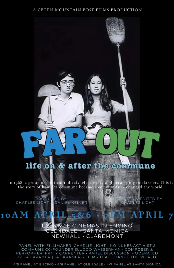 A new documentary film, Far Out: Life On & After the Commune, directed by Charles Light, tells the story of a group of leftwing journalists who splintered off from what was known as Liberation News Service (LNS). With candid then-and-now footage, Light’s eighty-five-minute film reveals the communards as young hippies and senior citizens, and shows how their paths intertwined with folk/rock superstars to fight the good fight.