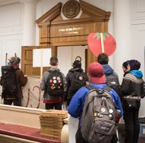 On March 7 at 3:15 PM, 25 members of the Ohio State University community including undergraduate and graduate students, staff , and alumni entered Bricker Hall and began a sit-in outside of President Drake’s office to demand OSU end its business relationship with the fast food giant Wendy’s. The sit-in is the latest escalation of the years-long, student-led “Boot the Braids” campaign to remove Wendy’s from campus during which students have fasted, and marched, in protest of the fact that Wendy’s refuses to protect farmworker human rights by joining the CIW’s Presidential Medal-winning Fair Food Program.