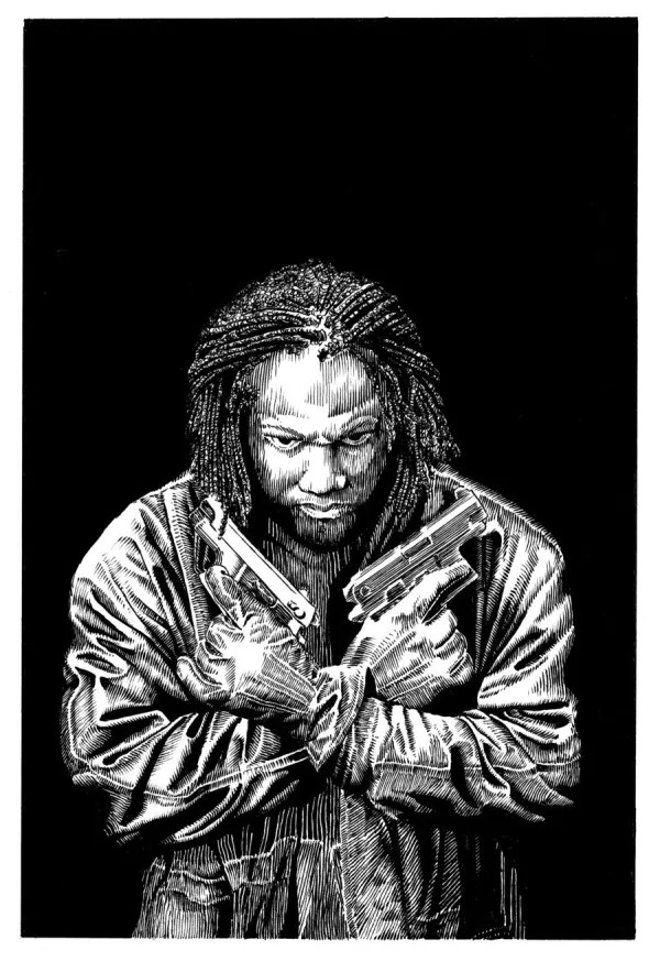 An American illustrator from the 1800s named Franklin Booth. Booth had a pen technique that many mistook for etching. He was a big influence on me.