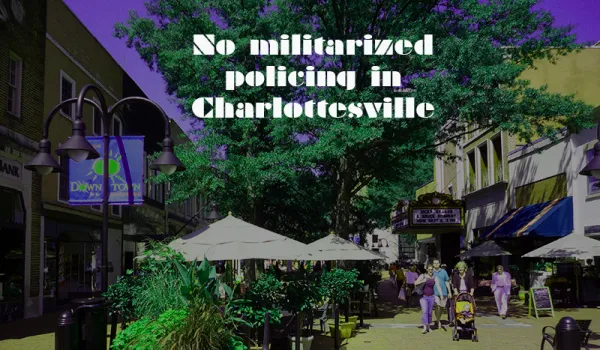 No militarization of the police force in Charlottesville! Can we not train our police force to befriend neighborhood leaders and citizens so that we are all working together to solve our societal issues. This has to evolve and happen on the local( Charlottesville) level.