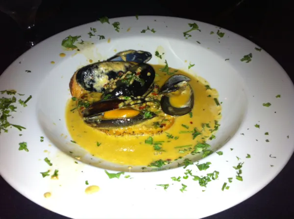 Nine Tables is exactly that. Nine Tables. Most often it is three 4 tops and six 2 tops. The concept is simple: for three nights per week, Nine Tables aims to serve twenty to thirty people per evening in a personal, slower paced manner similar to dining in Europe. Guests are invited to have a long, slow dinner at their own pace. Your table is yours for the entire evening from 5 pm to midnight if you choose. Tables are not “flipped” so when your dinner is complete your table gets the rest of the evening off. At first thought, one might think this would be a formal, stuffy experience…far from it, an evening at 9 Tables can be anything you want it to be. Most often it will be informal, fun and relaxing. The atmosphere is intimate, the small space is dark and cozy but there is enough space between tables for each group to have their own experience but also close enough to encourage camaraderie. The restaurant is BYOB and it is not uncommon for people to trade bottles or share during the evening. The best table to reserve is set up next to the chefs prep table which allows full access to all the action and to Chef Bill throughout the evening. For each guest, dining at Nine Tables is like having a personal chef at your home. The restaurant is largely a two person operation. Husband and wife team Bill and Suzanne Justice run most of the show. Suzanne minds the tables and assists with prep and running dishes out. Chef Bill cooks and banters with guests throughout the evening. Choices are a tasting menu of seven or five courses. Almost all of the ingredients are sourced within Athens County, usually on Thursdays to get ready for the weekend. Combined, the duo work hard to create a complete culinary experience for their guests from first course to the ending dessert. The two have an interesting history. They met at ACEnet – the local food business incubator. Bill was working as a food scientist. Suzanne was developing a product. They found they had a lot in common which led to marriage and a child. Those commonalities made them want to make a different dining experience for customers which would also led to creating a family friendly business model for themselves. The Nine Tables menu is constantly changing based on what is fresh and in season. Many dishes can be adjusted to meet a guest's taste or dietary needs. Since the menu I enjoyed won’t be the one you experience, I will just focus on two of the seven courses and I why I enjoyed them. My favorite dish was a serving of mussels. These were prepared in a sauce of white wine, heavy whipping cream (Snowville of course), garlic, red pepper flakes and parsley. All simple ingredients and all mixed to just the right proportion. The sauce and mussels were draped onto a freshly toasted slice of bread which swam and then sunk into the sauce. The best sign of a good dish of mussels is when I choose to drink the sauce at the end. I left no drop behind. My second favorite, was, maybe surprisingly, a salad. Suzanne mentioned the salads change constantly but are always more than just a simple mix of greens. My salad was a combination of fresh local greens, small balls of mozzarella and a few pickled peaches and onions. I don’t like onions and have never had a peach in a salad before but the pickling of both accentuated the flavors perfectly and made all of the elements of the salad able to stand on their own and together. The wholes were great but the sum of the parts was even greater. Because the onions were palatable and the peaches perfectly preserved I asked Bill how they came to him pickled. He shared with me that he pickled them a few hours before serving to help preserve their flavors. His pickling approach is a simple process which takes very little time but he finds it is one of the small touches people usually notice. My meal of seven courses lasted over three hours, if the Designated Diner and I were not in such a hurry to get back to Columbus before midnight, we would have stayed much longer. Dining at 9 Tables is like dining in a friend’s home for a small dinner party. It is a good exercise in retraining ourselves to the art of eating well: small courses spread over a long period of time so the meal and the company can be enjoyed equally. I will also mention that while I rarely drink coffee in the evening I was more than happy to indulge in locally produced Dawn Chorus Coffee, it was a perfect close to a wonderful evening. 9 Tables 9 N. Shafer St. Athens, Ohio (740) 707-4966 Regular Hours: Thursday, Friday, Saturday – 5pm to midnight