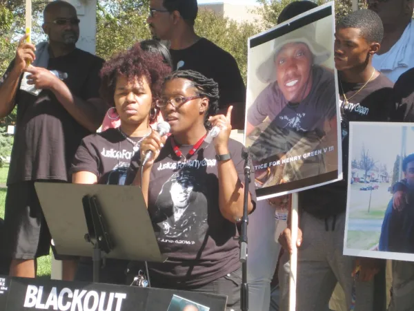 Adrienne Hood has participated in public demonstrations for her son Henry Green since June 15, less than two weeks after Green was killed by Columbus police. Early on, Hood’s words and demeanor reflected overwhelming shock and grief. At the blackout protest Hood’s grief was still evident, but her demeanor was fiery and her words expressed a steely determination.