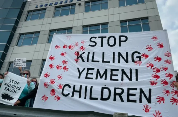 “Today we remember the over 40 children and 11 adults who were killed by a Saudi airstrike on their school bus, three years ago on August 9, 2018,” said Azza Rojbi, Tunisian activist, author and executive member of Mobilization Against War & Occupation (MAWO). “We must not forget that the laser guided bomb which killed these children was made in the United States, and that weapons which continue to kill Yemeni people every day are sold by Canada and the U.S. to the Saudi-led coalition.”