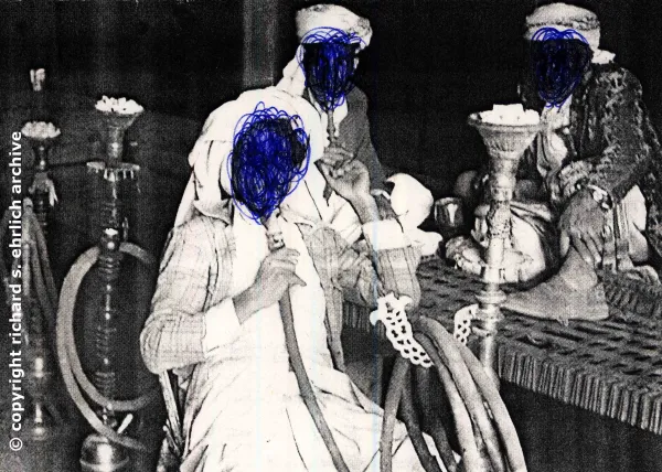in 2001 portrays men who appear to be Middle Eastern, smoking