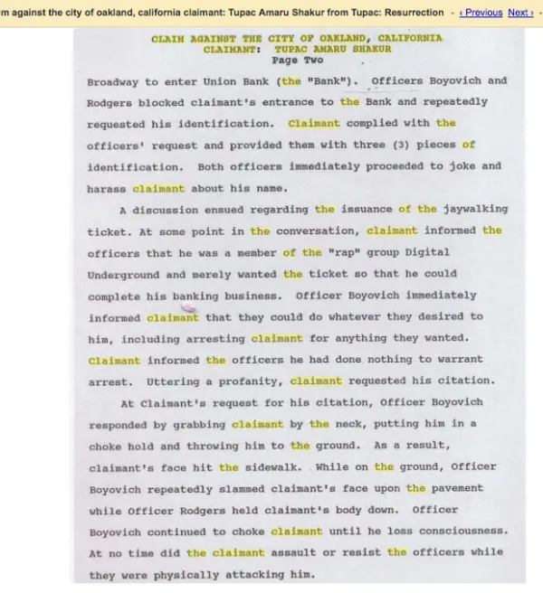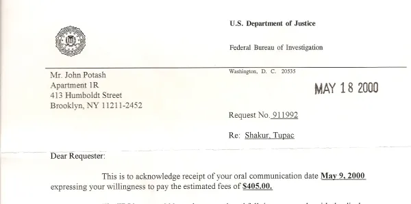 A month after the Marin attack, Dan Quayle made a televised speech denouncing Tupac’s first album and blaming it for a police officer’s death in Texas (which Tupac then sampled for a song on his second CD). Not mentioned was much evidence that San Francisco Bay area FBI director Richard Held had orchestrated these attacks on Tupac. A reporter in All Eyez states that “there is rumor that the FBI has a 4,000 page file on you.” This isn’t just a rumor as this movie review writer filed a Freedom Of Information Act (FOIA) request and a FOIA worker said there was over 4,000 pages. Only 99 were sent and even they were heavily redacted.