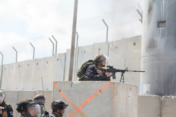 "An israeli sniper pointing at the unarmed protest." by Palestinian Grassroots Anti-Apartheid Wall Campaig is licensed under CC BY 2.0.