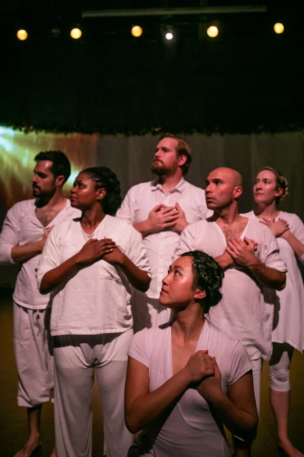 The energetic production’s highlights include a lyrical candlelit dance by the ensemble that resembled a swaying candelabra or chandelier. Zoe Hall, who has been with The Gang for 10 years and was recently seen in its Angels, Devils and Other Things, which she also directed, has a show stealing song as a Jewish woman lightheartedly lamenting how those who don’t believe in Jesus can feel left out of the swing of things at Christmastime. Joy vey!