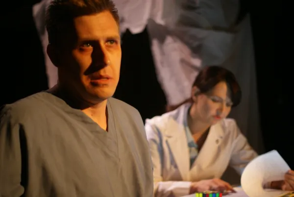 The mystery revolves around Tilly (Travis Horseman), a formerly upstanding businessman who’s undergoing psychological evaluation after assassinating the prime minister of the unnamed country where the story takes place. State-appointed psychiatrist Dr. H (Julie Ferreri) hopes to save Tilly from execution by proving he’s insane, but Tilly insists he did what he did to prevent an unnecessary war.