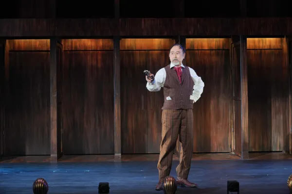East West Players presents Assassins on Thursdays through Saturdays at 8:00 p.m., with 2:00 p.m. matinees on Saturdays and 5:00 p.m. performances on Sundays through March 20 at the David Henry Hwang Theater, 120 Judge John Aiso Street, Los Angeles, CA 90012. For info and tickets: (323)609-7006; https://eastwestplayers.org/. Covid documents are checked but there was no social distancing at the sold out premiere.