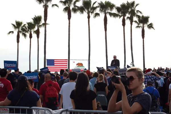 When presidential candidate Sen. Bernie Sanders addressed a Dec. 21 California campaign rally he railed against “more extreme weather - Venice, Italy is underwater.” But with an overflowing crowd of more than 14,000 people assembled on the sand and boardwalk, the democratic socialist’s supporters flooded that other Venice - L.A.’s bohemian beach known for weightlifters, tattoo parlors, skimpily-clad sidewalk skaters and street performers.