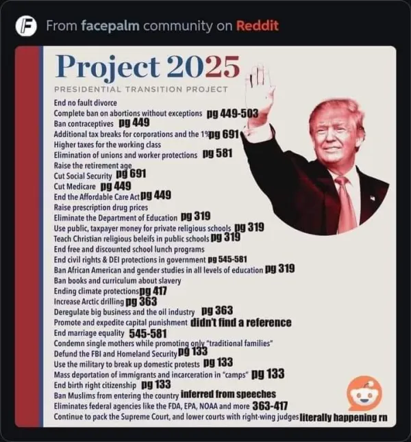 According to the 19th News, this is Project 2025: "The blueprint suggests transforming the FBI into a politically motivated entity; abolishing the Department of Education; and dismantling the National Oceanic and Atmospheric Association — which among other duties, tracks hurricanes — because it is part of a “colossal operation that has become one of the main drivers of the climate change alarm industry.” It would bar U.S. citizens from receiving federal housing aid if they live with anyone who is not a citizen or permanent legal resident and potentially terminate the legal status of approximately 500,000 “Dreamer” immigrants.