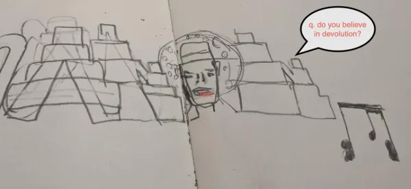 I hadn’t heard them rip it up and start again. Devo weren’t hardcore. Still, in the spirit of reinventing music, I could see an evolution from Velvet Underground’s white noise via late 70s Punk into Nirvana’s Devo covers.