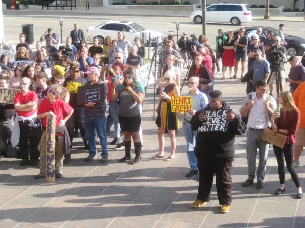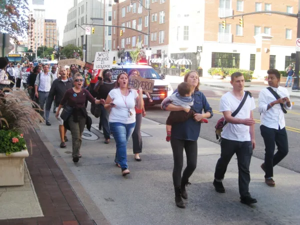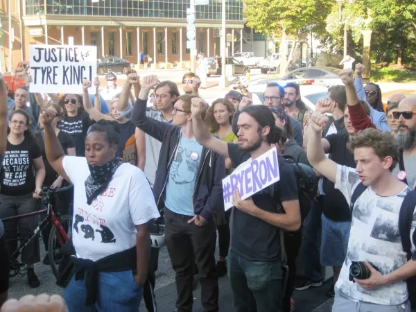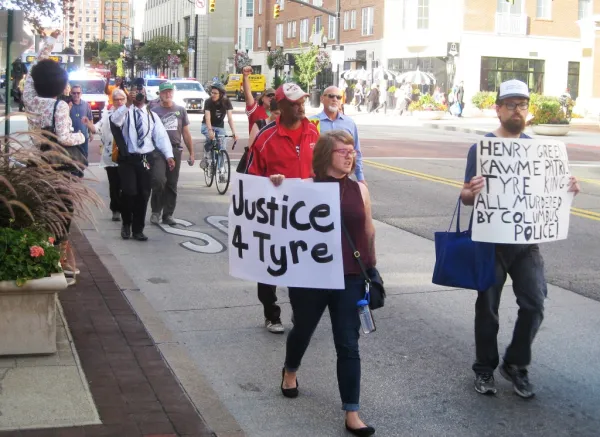 Afterward the crowd marched to the Franklin County courthouse and held a rally to protest Prosecutor O’Brien’s refusal to appoint an independent prosecutor in the police killings of Henry Green and Ty’re King.