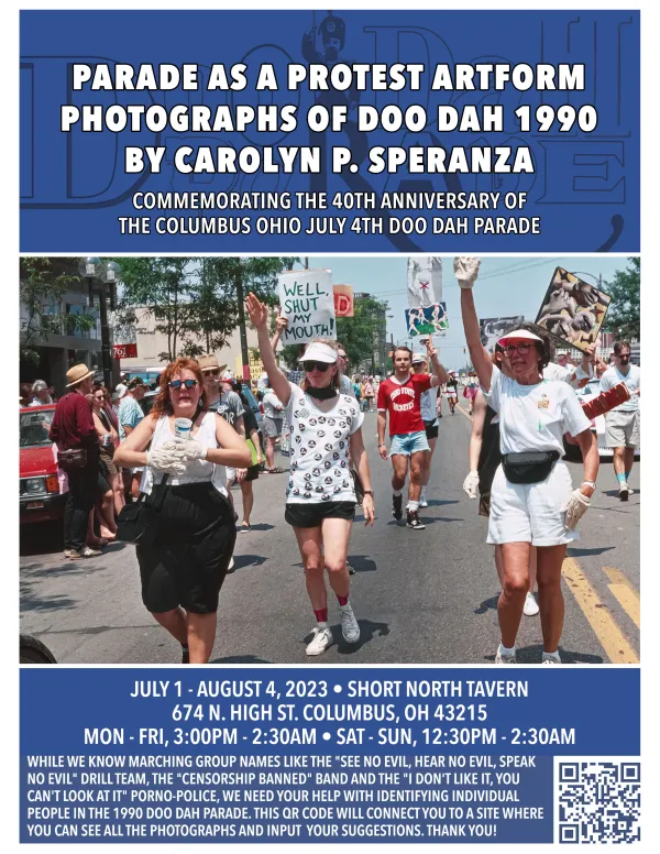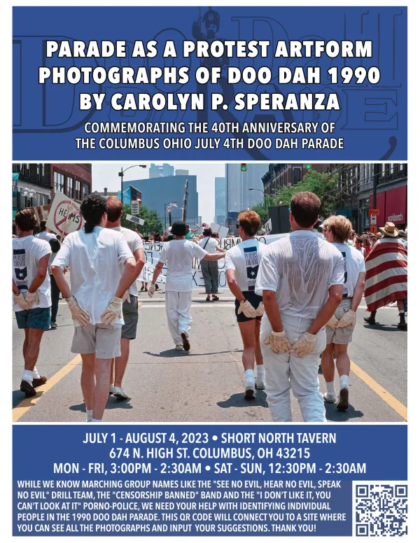 Parade as a Protest Artform: Photographs of Doo Dah 1990 is at the Short North Tavern, 674 N. High Street, Columbus, OH 4321; July 1 – August 4, 2023; Mon - Fri, 3:00PM - 2:30AM and SAT - SUN, 12:30PM - 2:30AM.