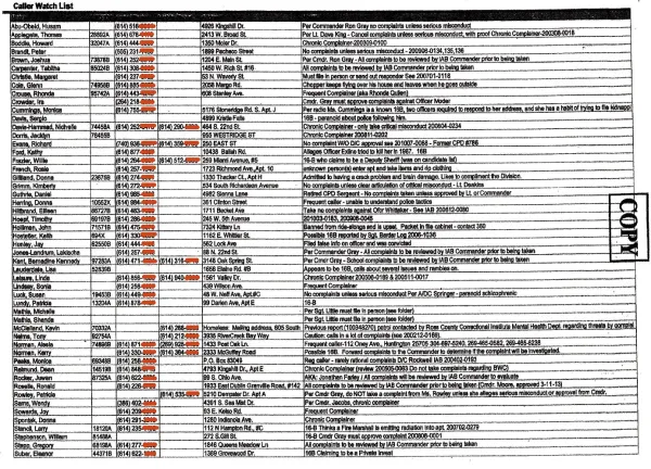 Yes, Columbus, thereis a Columbus Police Department ChronicComplainers List. After publishing aJanuary 30, 2014 cover story “Are you on the Columbus Police’s secret blacklist?” the Columbus Free Press has obtained a copy of a so-called “Caller Watch List”through a public records request. This list, along with other documents, raises new concerns surrounding the police department’s controversial inaction on phone calls from certain Columbus residents.