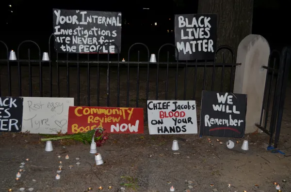 Sign at the site of Tyre King's death on 18th Street near Capital.