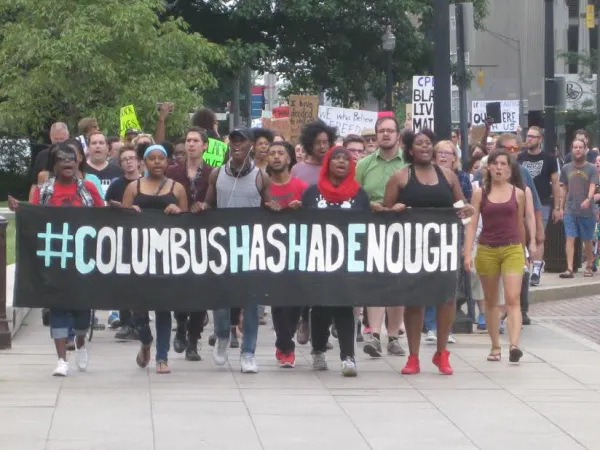 Krakoff was arrested on July 21 near the Columbus Division of Police building in downtown Columbus after a Black Lives Matter march from the Ohio Statehouse. The demonstrators were protesting the June 6 killing of Henry Green by undercover police.