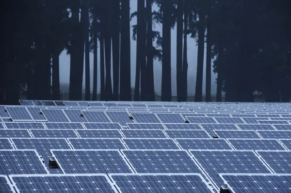 "Solar panels in the mist" by OregonDOT is licensed under CC BY 2.0.