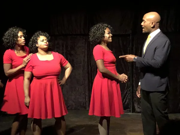 Among other things, Act I explores how the Civil Rights struggle played out in the music scene during the 1950s/1960s, as African Americans fight for parity on the stage, disk and screen. There’s a funny vignette depicting how whites (from Elvis to Pat Boone) misappropriated and profiteered from Black music, featuring Caucasoid crooner Brian T. Jones. (His “brother from another mother,” Van Jones, recently pointed out in Eugene Jarecki's documentary The King that Presley not only stole Black music but never supported the Civil Rights movement.) Tellingly, once the Dreams “make it,” performing at Vegas venues and beyond, this leitmotif of how the equal rights cause played out in music is dropped in the second act.