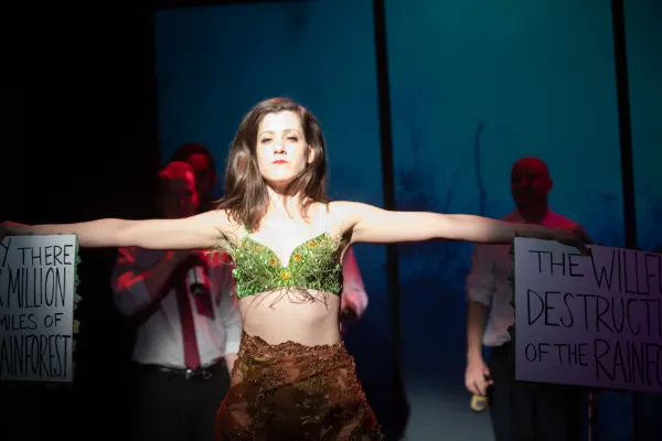 Rogue Machine, a recent Ovation Award winner for Best Season and one of our most envelope-pushing theater companies, previously produced Bartlett’s sexually charged Cock. But in Earthquakes, while the love lives of the dramatis personae are indeed part of the story, their personal stories are interwoven with and secondary to the overarching, overwhelming theme of the climate emergency we are currently undergoing. Experiencing this sprawling epic is, I imagine, a bit like jumping into one of those tomes by Thomas Pynchon, Jonathan Franzen and/or for that matter, James Joyce’s Ulysses.