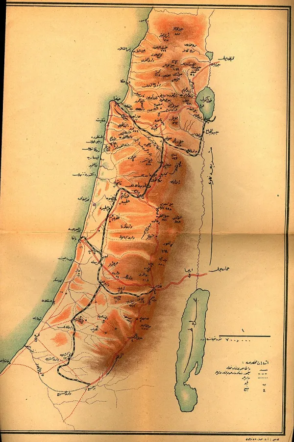 Palestine in 1914 from Jughrafiya-i Osmani (1332 A.H. - 1914) (wikimeadia)