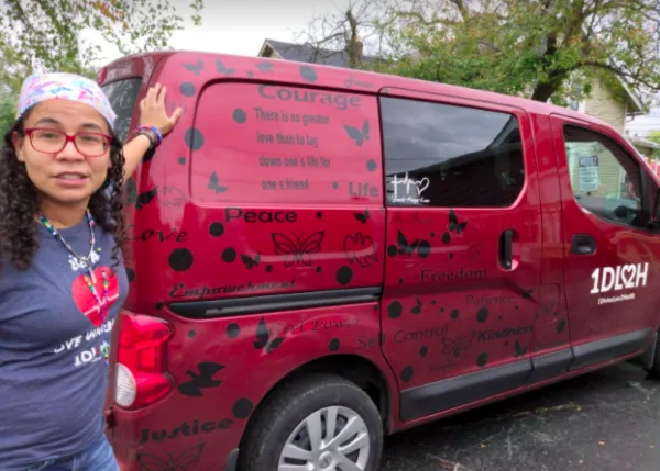 This is no 9-to-5 job. Esther is out there on the street in a red van decorated with butterflies and empowering words (which the women have named the “Love Bug”) two or three nights a week, passing out food, clothes, Narcan, condoms, and providing much needed wound care, in all four corners of Columbus. Esther also runs the first full-time drop-in center in Franklin County, located on Sullivant Avenue, where she serves hot meals, offers showers and laundry, wound care, and a playroom for the women's children, five days a week!