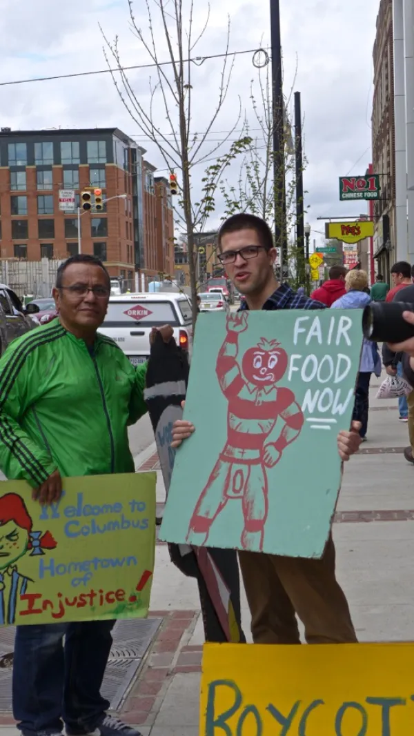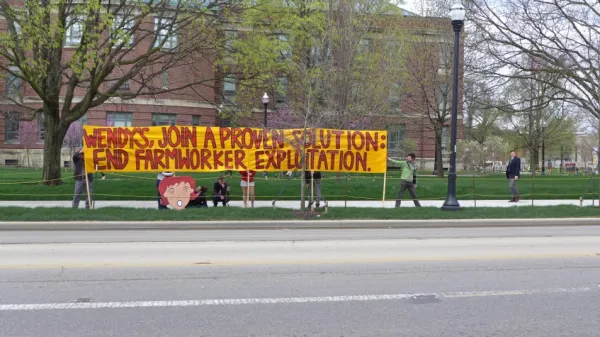 Fair Food friends and allies gathered on Monday, April 20th at 11:30am to support the Ohio State Student/Farmworker Alliance and Coalition of Immokalee Workers' Boycott on Wendy's! The crowd wanted to show Wendy's that Ohio Fair Food will not stop till they sign the #Fair Food Program.