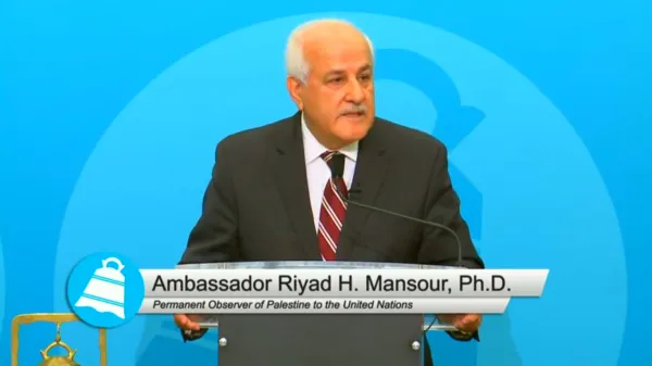 "File:Riyad Mansour (City Club of Cleveland).jpg" by City Club of Cleveland is licensed under CC BY 3.0.