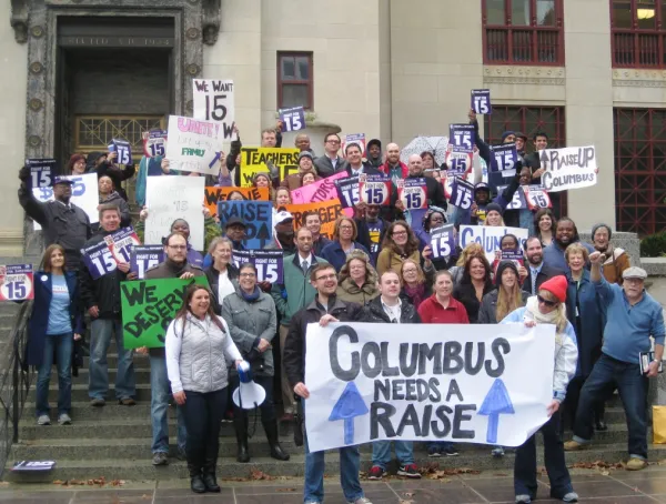 The #FightFor15 protest at Columbus City Hall was one of 230 solidarity rallies nationwide.