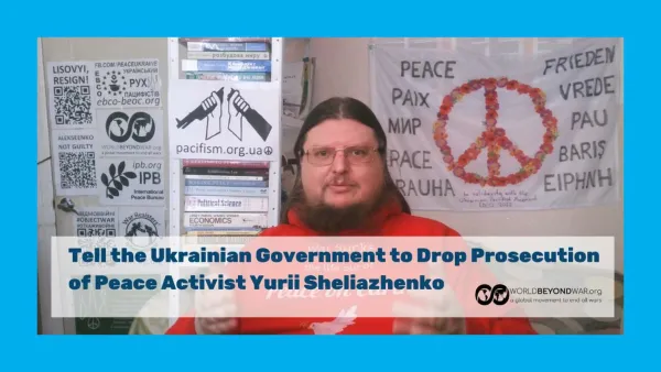 We call on you to drop any legal proceedings against Yurii Sheliazhenko, and to respect human rights, the right to conscientious objection, and the right to freedom of speech. The absurdity of prosecuting someone for justifying Russian warmaking on the basis of a statement in which he has explicitly condemned Russian warmaking, is matched by the absurdity of waging war in the name of freedom and democracy while engaging in this sort of harassment of citizens. We urge you to do better.
