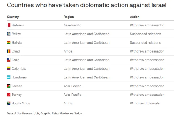 Recently, dozens of countries around the world have called on Israel to show more restraint in the war in Gaza, while a smaller number have gone a step further by severing relations or making other official diplomatic protests. According to Axios, here is a list of countries that have withdrawn diplomats over Israel's genocide in Gaza and its frequent violations of international law: