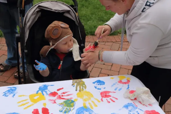 The Ready for 100 table included a community painting project at Green on the Green in May 2019. Photo by Alana Simmons.