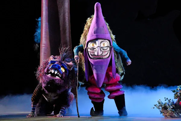 Suffused with special effects, the overall ambiance evokes a sort of psychedelic Sesame Street with a Big Bird on acid, combined with elements from Peter Pan’s Neverland, Lewis Carroll’s Alice in Wonderland, Tchaikovsky’s Nutcracker Suite and the Beatles’ 1968 animated feature Yellow Submarine. The original score synthesizes Wagnerian flourishes with Germanic folk music by 19th century composer Engelbert Humperdinck (not to be confused with the 1960s Tom Jones knock-off, a British pop singer who adopted the same Germanic moniker as his stage name).