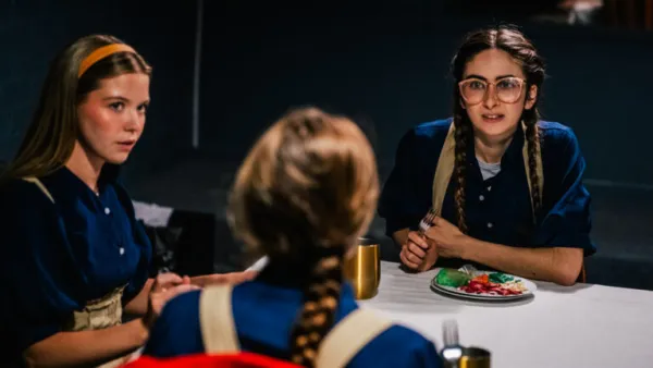 bespectacled Liesel (Paige Simunovich); Margot (Caitlin Zambito); and Anna (Ali