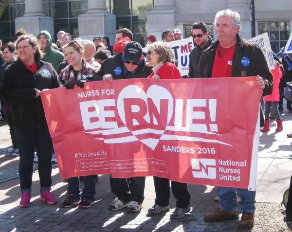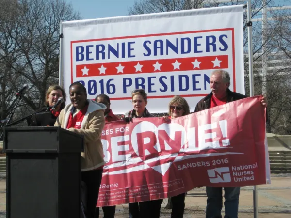 Sadie Hughes-Young is a registered nurse at the Cincinnati VA Medical Center and VA director for National Nurses United. “If a loved one has gone to the hospital lately, you may have to stay there with your family and help provide some of the care because there are not enough nurses at the bedside,” she said. “Bernie Sanders has supported a nurse/patient ratio that makes it safe for you and your loved ones when you go into the hospital.