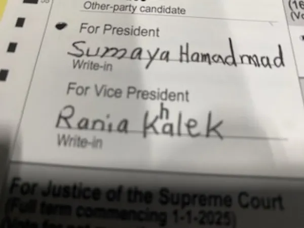 My initial response after Jill Stein's name was removed from the ballot in Ohio 10 days was sadness and disappointment. So, it was time to choose another write-in candidate. After some serious thought, I decided on Gadi Francis for President and Rania Khalek for Vice President. After filling up my absentee ballot and before mailing it, I realized Gadi Francis was not a US citizen (Sorry, Miss Ghadi). Therefore, I decided to vote in person and had to pick two other write-in candidates: I settled for Dr. Sumaya Hamadmad for President and Rania Khaled for the VP candidate while I concluded the two Senate candidates were far worse than Harris and Trump. So I picked up Mazen Rasul, a local Palestinian attorney, for my write-in Senate race. I will explain why I chose those three people as the write-in candidates.