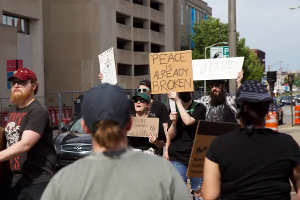 Darrin, also from Veterans for Peace, asked listeners to “Come back for the next couple Tuesdays at 4:30 when we will see this protest grow so we can occupy multiple intersections over time.” These protests have been peaceful, nonviolent, and did not obstruct traffic. In addition, no police have attended