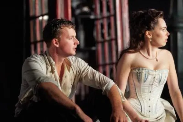 another kind of “character” that appears onstage - the posh house inhabited by the elite Birling (rhymes with “pound sterling” - which rhymes with Rod Serling) family. What befalls this house of upper class Brits is “Supernatural Realist” symbolism of class war and rather ingenuously rendered. One is tempted to say that designer Ian MacNeil should be credited as a member of the cast, not the crew, because the house he has wrought is a “co-star” doing some of this production’s best “acting.” Calls has evocative stagecraft and ambiance, including the best lamppost I’ve ever seen grace the boards.