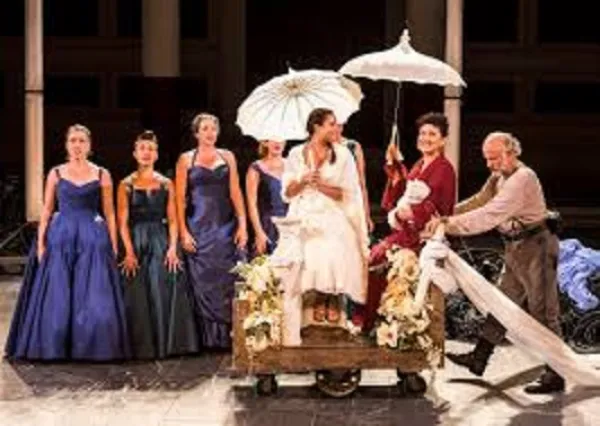 A standout in the cast is Acquah Kwame Dansoh as the über-warrior Achilles, whose awareness - like Iphigenia’s - of what is really going on ascends. The Greek chorus commenting on the action is led by the imposing figure of Bethany Thomas, as the quintet sings songs composed by Andre Pluess. Jim Ortlieb plays the Old Man - a slave not without guile - with comedic panache that seems more at home in a comedy by Aristophanes. Ortlieb reminded me of Jack Gilford as Hysterium in A Funny Thing Happened on the Way to the Forum.