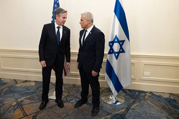 Secretary Antony J. Blinken meets with Israeli Opposition Leader Yair Lapid in Tel Aviv, Israel, November 30, 2023. (Official State Department photo by Chuck Kennedy); U.S. Department of State, Public domain, via Wikimedia Commons