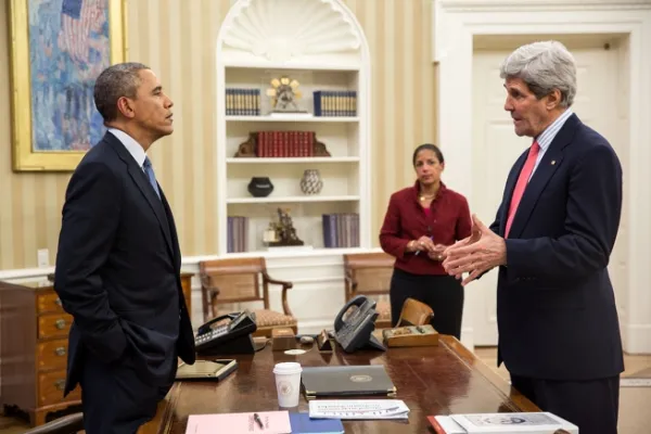 President Barack Obama talks with Secretary of State John Kerry and National Security Advisor Susan E. Rice in the Oval Office on March 19, 2014. (Official White House Photo by Pete Souza) President Barack Obama talks with Secretary of State John Kerry and National Security Advisor Susan E. Rice in the Oval Office on March 19, 2014. (Official White House Photo by Pete Souza)