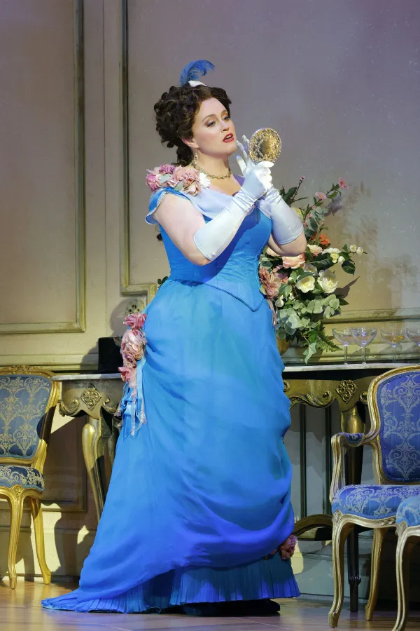 During the revelry, swept up in the ebullient spirit of things, the dashing newcomer Alfredo Germont (Armenian tenor Liparit Avetisyan) jauntily croons the immortal aria “Toast, Let’s Drink from the Joyful Chalices”: