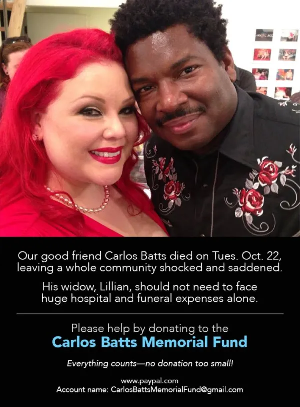 On Tuesday, October 22nd, the sex-positive community lost a fearless leader, Carlos Batts. This beloved artist passed away at the age of 40. His work and spirit touched many of us, leaving us stunned and saddened by his sudden departure. An award-winning artist, photographer and director, Batts' artwork has appeared on book covers, fashion magazines, music videos, comic books and movies. Carlos has three internationally distributed hardbound coffee table books; “Wild Skin,” “Crazy Sexy Hollywood” and “American Gothing” that document a wide variety of sub-cultures. Batts directed independent features; Voluptuous Biker Babes, Kiss Attack, Young Hollywood as well as underground art films: American Gothic, Alter Ego and Voluptuous Life that are distributed through various mainstream outlets. Born in Baltimore, Batts lived and created in Hollywood with his muse and wife, April Flores. Carlos Batts directed successful independent features that are available through various sophisticated commercial media outlets. Among an ever-expanding universe of other forums, in addition to photography, Batts directed short films and curated photography and street art exhibits. A few days before he passed away, Carlos and April celebrated the release of their new book, “Fat Girl” at the Museum of Contemporary Art in Los Angeles. “Fat Girl” is a never before seen collection of photography over a 12 year period in the life of model April Flores by Batts. They worked on this together, creating a photographic retrospective on their relationship. Intimate and kept private throughout their career together, it is finally available for all to see in one book. April Flores is widely followed on Twitter as @Fatty_D. She has claimed herself as a Fat Girl, empowering the word, rather than being insulted by it. Fat Girl is available via Amazon.com . All of the work created by Batts, that features his wife, displays every inch of her incredible beauty. His images of her immediately change perspectives on beauty - how a woman should look. This loving portrayal, and the way she reverberates sexuality, illuminates anyone taking a moment to indulge in this gift. Carlos was inspired to give this gift to the world, changing the landscape of the adult entertainment industry. Eyefuls of gorgeous curves, steamy with love, intimacy and groundbreaking cinematography and sound scapes (using either no, or very little dialogue). Losing him, we are losing a true artist who revolutionized how some women are showcased in porn. Thankfully some filmmakers, such as Courtney Trouble, learned a great deal from his mentoring and friendship and can carry out similar visions. I had the honor of meeting Flores and Batts at a Good Vibrations store in San Francisco in 2009. My first impression: I was struck by how palpable their love was. That such a love was possible between two people inspired me. Working with them, they invited me to appear in Dangerous Curves, twirling fire tassels in the Pacific Ocean. We were also panelists at Annie Sprinkle and Beth Stephens' Ecosexual Symposium in Santa Cruz in October 2010. I am a changed person for how much beauty they both gave to me every time I was in their presence. Thank you for being in my life, and my deepest condolences to all who loved and knew him personally. Carlos Batts is survived by his loving wife and muse, April—now grieving while confronting tremendous medical and funeral expenses. Please consider donating to the Carlos Batts Memorial Fund: http://www.carlosbatts.com/carlos-batts-memorial-fund/ CarlosBattsMemorialFund@gmail.com via www.paypal.com On Friday, November 15th, please join us in Los Angeles for a special event: Works of art will be on display and ready to be picked up by winning bidders that night. Some of the biggest names in contemporary art have donated works. Antebellum Gallery at 1643 N. Las Palmas | Hollywood, CA 90028 Friday, November 15, 2013 6 – 9 PM For more information call the Antelbellum Gallery at (323) 856-0667. Carlos lived and dreamed big—let’s do what he did each day and make it count! CBATTSFLY Forever!