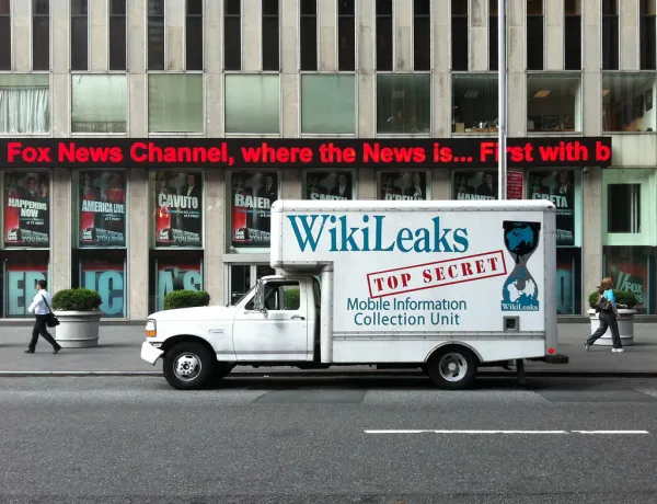"WikiLeaks Truck at Fox News Channel" by Wikileaks Mobile Information Collection Unit is licensed under CC BY 2.0.