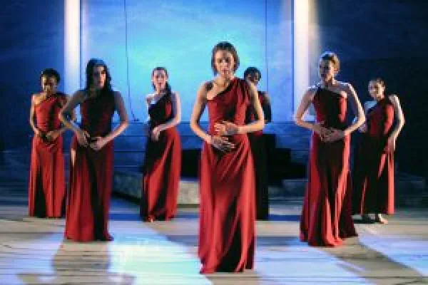 Machado and director John Farmanesh-Bocca have accentuated the antiwar nature of the source work but stressed the tragic elements beyond Aristophanes’ comedic original. In doing so they seemed to have added elements of Aeschylus’ Greek tragedy Prometheus Bound. Another way they have emphasized the catastrophic is by making the lead character an ancient incarnation of Cindy Sheehan, the prophetic peace activist whose son, U.S. Army Specialist Casey Sheehan, was killed during the Iraq War - a conflict even more unnecessary and mendacious than Athens’ clash of the titans with Sparta during the Peloponnesian War.