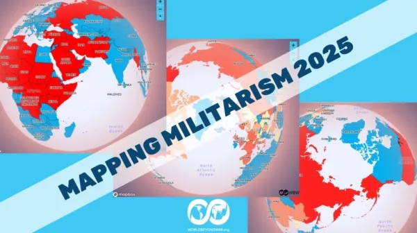World BEYOND War has just released its 2025 edition of Mapping Militarism, which uses 24 interactive maps to highlight the state of war and peace on our planet. Each map allows the viewer to spin the globe, zoom in and out, scroll the timeline back through the years, or switch from map view to list view. Try it.