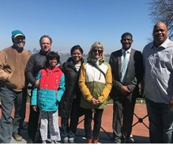 Steve and I drove from Columbus to a stately Lakewood home overlooking Cleveland’s harbor. We met our friends there. Suneetha had pulled her daughter from school, since Bindu was working on a paper about clean water availability, to meet the two iconic water keepers.