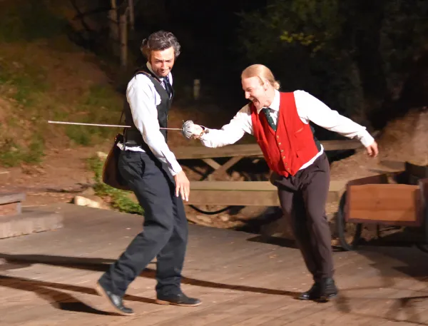 Sir John Falstaff is arguably William Shakespeare’s greatest comic character. The ribald, oversized skirt chaser appears in three of the Bard of Stratford-upon-Avon’s plays, including Henry IV, Part 1 and Part 2. According to Director’s Notes in the program, Queen Elizabeth enjoyed this roguish character so much that Her Majesty commanded the playwright to write another comedy featuring Falstaff. That third Falstaffian play, The Merry Wives of Windsor, is now the summer season opener of Will Geer’s Theatricum Botanicum at Topanga Canyon.