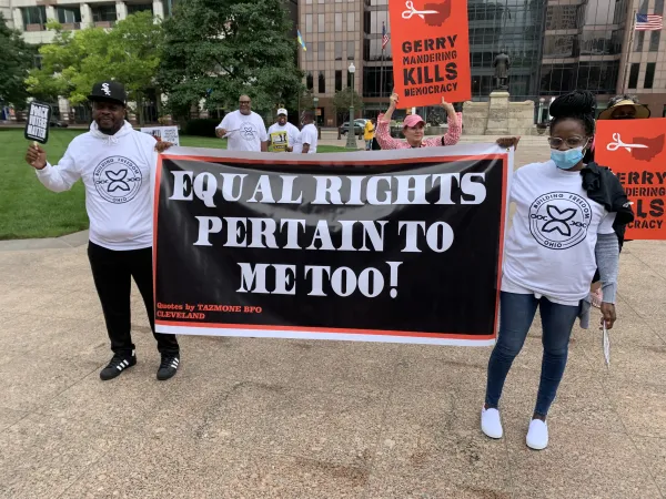 Nearly 100 Ohioans across race, place, and income rallied at the Statehouse Saturday to keep up the fight for fair maps