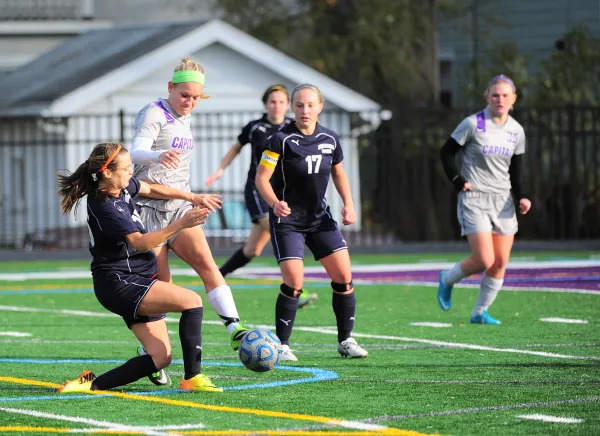 Coach Chris Kouns didn’t have far to look when he was trying to put together the roster for the Capital University women’s soccer team. Nine of the Crusaders’ 35 players came from the team’s backyard in Columbus. That local contingent has helped the Crusaders make their first run to a NCAA Division III national semifinal. Capital, 19-4-2 overall, faces William Smith College, (21-1) 12 noon Dec. 6 in San Antonio. The winner of that game meets either Trinity University (24-0-2) or Middlebury College (17-1-3) in the national championship game 2:30 p.m. Dec. 7 in San Antonio. “We’ve been fortunate. There have been some great soccer players who have come through central Ohio who wanted to combine education with a great soccer experience (at Capital),” Kouns says. “What’s kind of cool is our (nine out-of-state) kids learn from the central Ohio kids and the central Ohio kids are learning from them as well.” Two of the other NCAA soccer tournaments are getting a little taste of central Ohio as well. Also in San Antonio, sophomore midfielder Noah Grumman (Upper Arlington) and Williams College (15-6) will meet Messiah College in a semifinal 8:30 p.m. on Dec. 6 in the Division III men’s tournament. The winner plays either Loras College or Rutgers-Camden College in the championship 6:30 p.m. Dec. 7. Georgetown, which had sophomore midfielder David Witkoff (Gahanna) and freshman goalkeeper Anderson De Andrade (Olentangy Liberty) on its roster, and Maryland, which features freshman defender Alex Crognale (Gahanna), both advanced to the third round of the Division I men’s soccer tournament. The fifth-seeded Terps (15-3-5) defeated 12th seeded UC Irvine 1-0 on Dec. 1 in the third round and will play the University of California (14-4-2) in a quarterfinal 4:30 p.m. Dec. 7 in Berkley, Calif. The sixth-seeded Hoyas (14-5-2) lost to 11th seeded Michigan State 1-0 on Dec. 1. “Central Ohio’s starting to become a good place for (developing soccer) players,” Witkoff says. “As a whole, the area is getting better and better. I’m excited to see the new players come up.” CAPITAL HITS THE RIGHT NOTES Each of the Columbus players has taken different paths to get to their respective NCAA tournaments. Corey McClellan, a senior defender for Capital, says the Crusaders’ march to the national title started some 5,000 miles away from Columbus in August. The Worthington Kilbourne graduate credits a preseason trip to Sao Paulo, Brazil for unifying the returning players. “After spending time together and performing really well there, we knew this was going to be a different year,” McClellan says. “We set some goals during that trip and we did everything we could to reach them. “We’re creating a legacy for ourselves. Winning the Ohio Athletic Conference title (with a 7-2 record and a 4-0 win over Jonathan Carroll in the conference tournament final on Nov. 10) opened everyone’s eyes. We realized this team is capable of doing so much more.” Kouns drew players from Kilbourne (McClellan and senior forward/midfielder Livvy Hein), Canal Winchester (freshman midfielder Jenna Zuberi), Grandview (senior forward Hilary Ells), New Albany (sophomore midfielder Megan Tolnar), Thomas Worthington (sophomore forward Kim Hoerauf), Watkins Memorial (freshman defender Melissa Spurbeck), Westerville North (freshman defender Cassaddie Roach) and Worthington Christian (junior midfielder Jessie Cermelj). The Crusaders won the OAC tournament five times and made it to the NCAA tournament four times before this season but Capital had never advanced this far in the tournament. Making it to the ethereal heights of the semifinals is a relatively new experience for the Columbus natives. None of the Capital’s Columbus contingent were from high schools that made it to the state semifinals in the 2000s. “This group may not have won a lot of state championships or played at the highest level of soccer but they came into this program with a work rate,” Kouns says. “I’ll take a team of piano movers any day of a week over a team of maestros. The maestro can’t play the piano unless someone has moved it there. “They work and fight for each other and given us that piano carrier mentality. Honestly that’s why we’ve been successful.” TRADITIONAL POWER IN AN UNFAMILIAR ROLE During his senior year at Upper Arlington, Grumman was looking for a college with two things: a good reputation in academics and a strong soccer program. He found both at Williams in Williamstown, Mass. Since 1993, the Ephs (so named in honor of school founder Ephraim Williams) have only missed the NCAA tournament three times (1997, 2008 and 2011). The Massachusetts school won the title in 1995, placed second in 1993, and reached the semifinals in 1998, 2009 and 2012. Last year, Williams lost to Ohio Northern University 3-2 in a national semifinal game. “I had very strong goals in soccer and academically and I really wanted to find a college with that combination,” Grumman says. “Everything fell into place.” However, the Ephs found themselves in an unfamiliar position at the start of this season. Williams started the season 3-2 overall, equaling the number of losses it had in 2012, and finished the regular season 9-4 overall. The Ephs lost to Amherst 1-0 in the finals of the New England Small College Athletic Conference tournament. “No one expected us to come back here,” says Grumman, whose team received an at-large bid for the NCAA tournament. “We were really the dark horse team.” Williams avenged two of its losses by beating Amherst 1-0 in a Nov. 24 sectional final, handing the Lord Jeffs’ first loss in 40 matches over the last two seasons. “(The regular season losses) were a tough pill to swallow but they made our team stronger,” Grumman says. “They were ultimately a good wake-up call for us. “I always felt like this was a very talented, very skilled team. We peaked in the latter parts of the season.